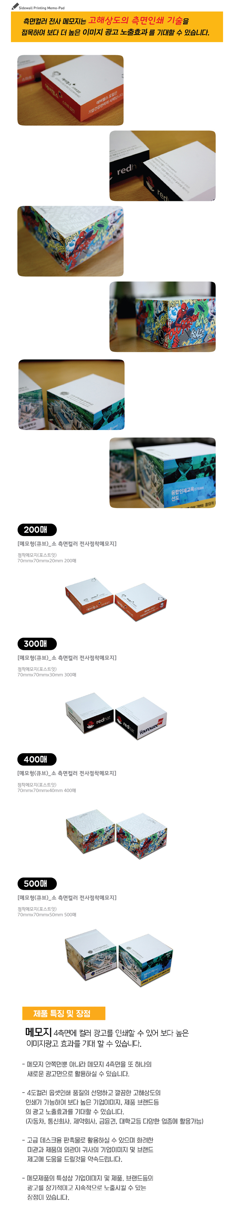 Å¥ºêÇü Ãø¸éÀü»ç Á¡Âø¸Þ¸ðÁö (70x70 500¸Å)